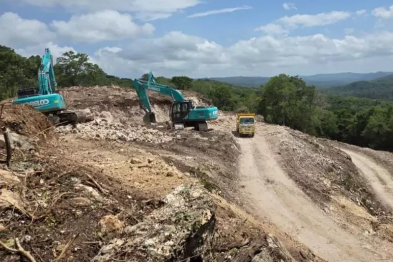 The heavy lifting at the pit is being managed entirely by a local Timor-Leste contractor crew, equipped with a substantial fleet of earthmoving machinery. This fleet includes three excavators, a loader, a backhoe, a support digger, two bulldozers, and a dozen community-owned dump trucks fitted with mud chains to handle challenging wet-season conditions.