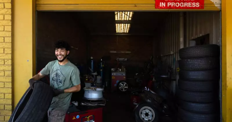 At RG Tyre and Wheels in Broadmeadow, owner Yadi Haidari and his team were flat out on Friday, January 9, despite the oppressive conditions. The small workshop, lacking air conditioning, offered little relief beyond a cold water tap.