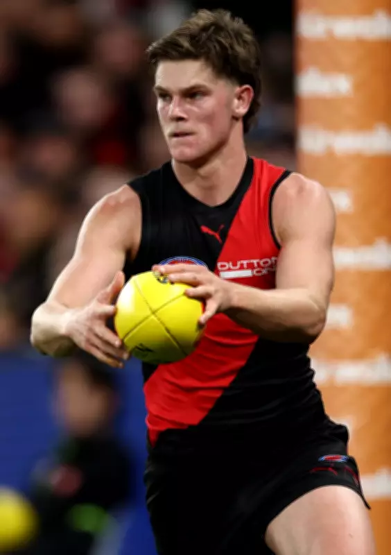 Farrow played a pivotal role in Essendon's first win of the season, a commanding 45-point triumph over Melbourne during Gather Round. In just his third career game, he delivered a stellar performance with 22 disposals at an 82 percent efficiency rate, including 16 kicks and six handballs, while also securing 12 marks. This effort mirrored his previous match against the Western Bulldogs, where he recorded 21 disposals and 12 marks, highlighting his consistency and impact.