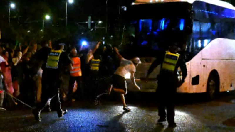 As the team boarded their bus, approximately 200 demonstrators blocked the vehicle, banging on its sides and chanting "let them go" for about 15 minutes. The situation escalated to the point where police had to intervene, physically tackling and pushing back the crowd to restore order. Amid the turmoil, the Iranian players were captured on camera taking photos of the protest from inside the bus, highlighting their precarious position.