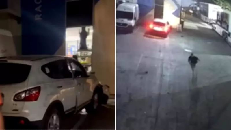 CCTV footage then showed the Nissan perfectly flew through the gap before striking the building.